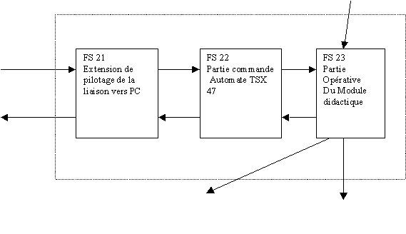 Nous disposons dun automate TSX 47 équipé dun module additionnel destiné à échanger des informations avec un PC superviseur. Un " Synoptique " remanié, cest à dire débarrassé de sa partie gestion électronique des capteurs et des actionneurs, relié à notre Automate sera le point de départ du projet des étudiants de 2ème année BTS ii. Le câblage Synoptique/Automate nest pas assuré par les étudiants, et il sera testé avant livraison.